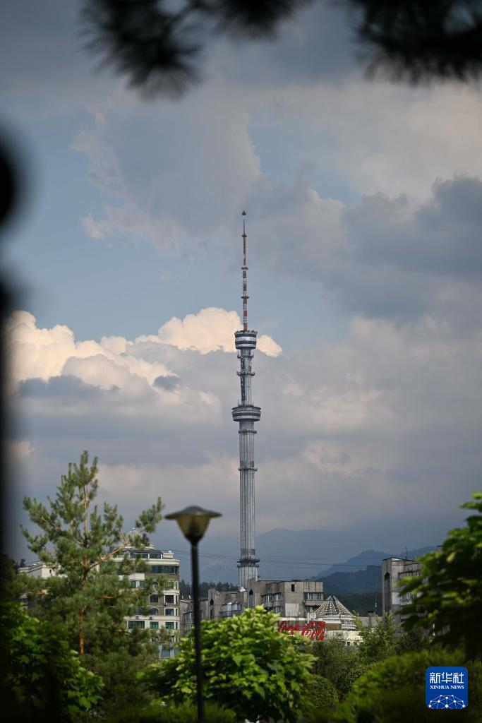 这是8月3日在哈萨克斯坦阿拉木图拍摄的科克托别电视塔。