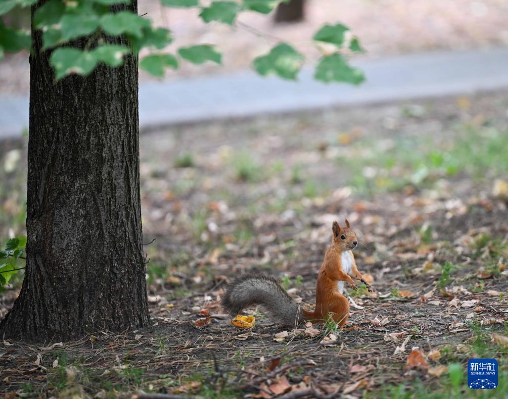 这是8月3日在哈萨克斯坦阿拉木图一个公园拍摄的松鼠。