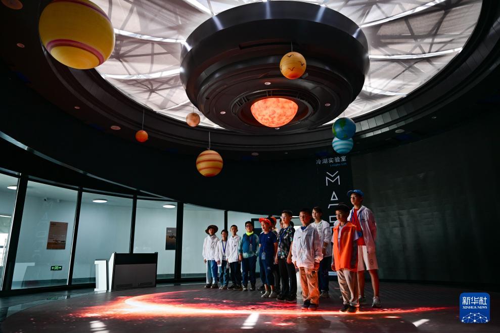 7月29日,参加暑期研学的小朋友在冷湖镇“冷湖实验室”学习天文知识。