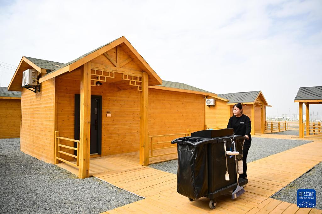 7月30日,冷湖镇一家民宿的工作人员准备清理房间。
