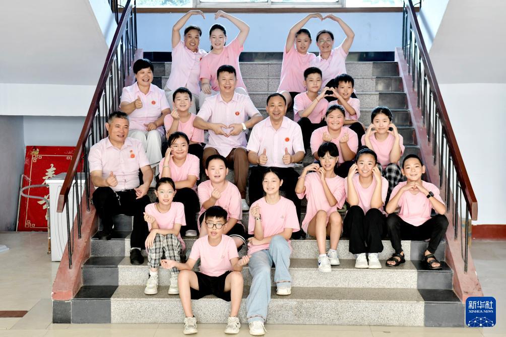 8月5日,在临沂市临沭县孤困儿童心灵家园,徐军(三排右三)及团队成员与孤困儿童合影。