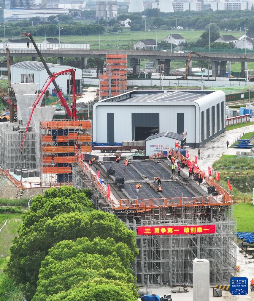 8月6日拍摄的中铁建城通公司高铁苏州北站快速联络道1标段项目施工现场(无人机照片)。