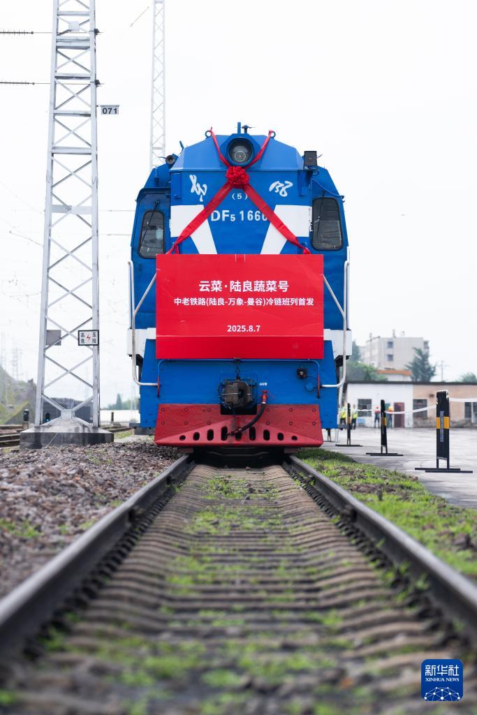 当日11时许,一列装载10柜约260吨云南蔬菜的“陆良蔬菜号”冷链货运班列从云南省曲靖市陆良县陆良火车站发车。该班列沿中老铁路到达老挝万象南站后,所运蔬菜将继续转运至泰国曼谷。泰国的榴莲等生鲜产品将搭乘返程班列进入中国市场。