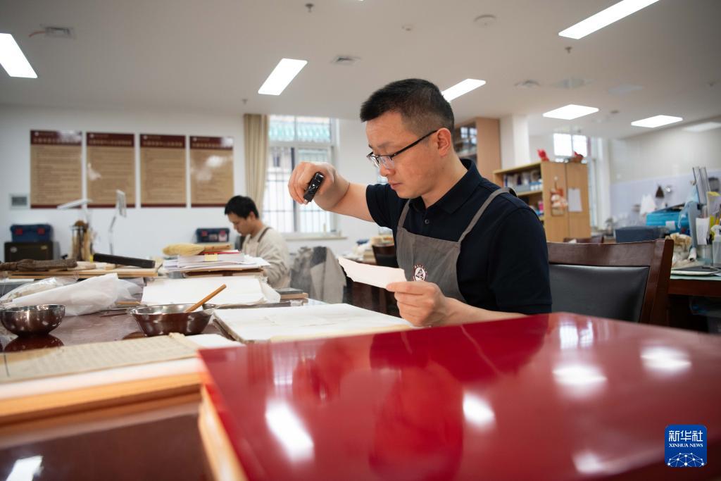 古籍修复是技术活,更是磨炼心性的过程。入职头几年还坐不住的金鑫,现在心能定下来,修复技艺也渐渐熟练。谈及未来的小目标,他的回答很简单:“争取修好每一本书。”