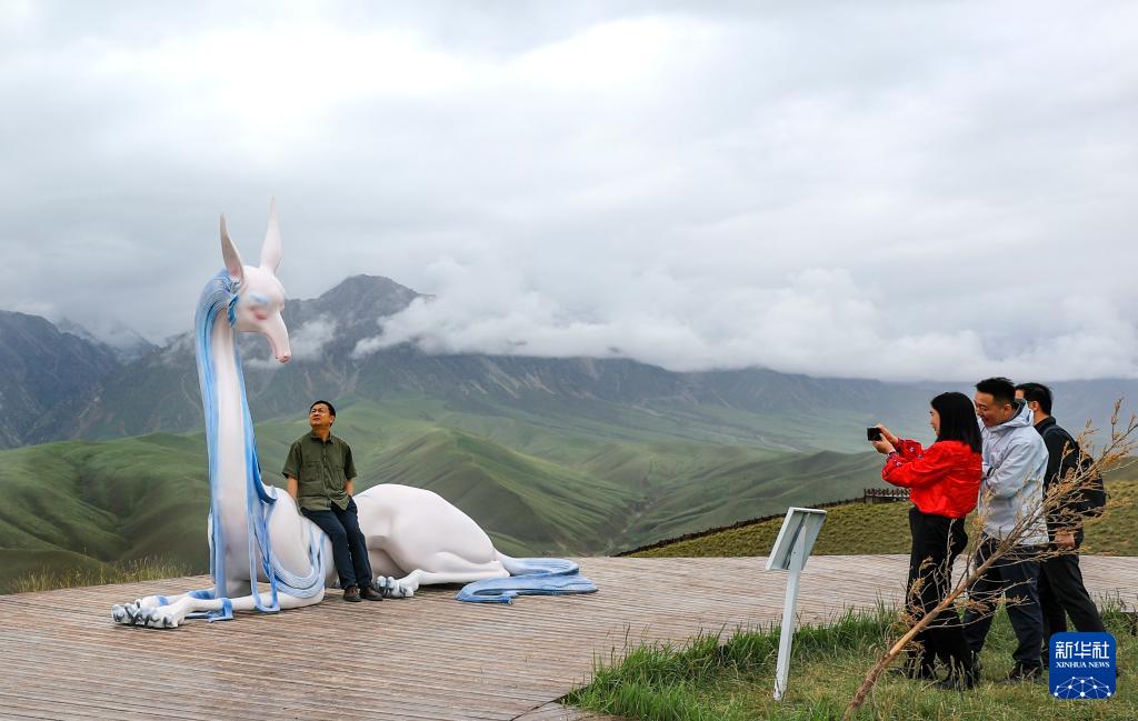 8月6日,游客在新疆昆仑山景区拍照留影。