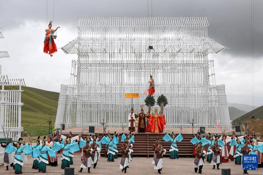 8月6日,新疆昆仑山景区演员表演《源起昆仑》大型实景剧。