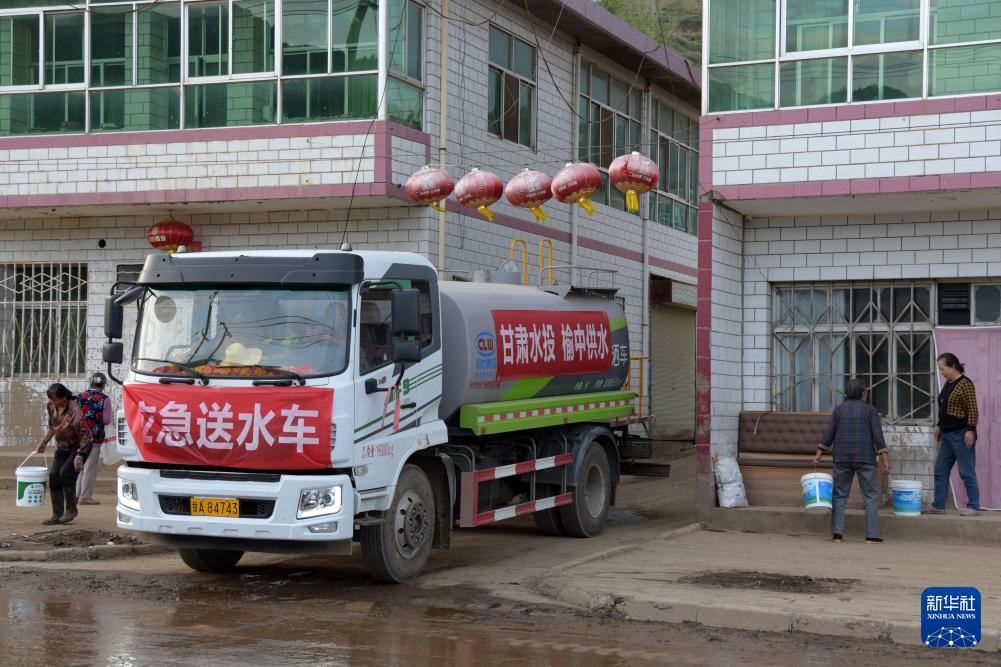 8月11日,在榆中县城关镇兴隆山村,当地水务部门为村民送去饮用水。