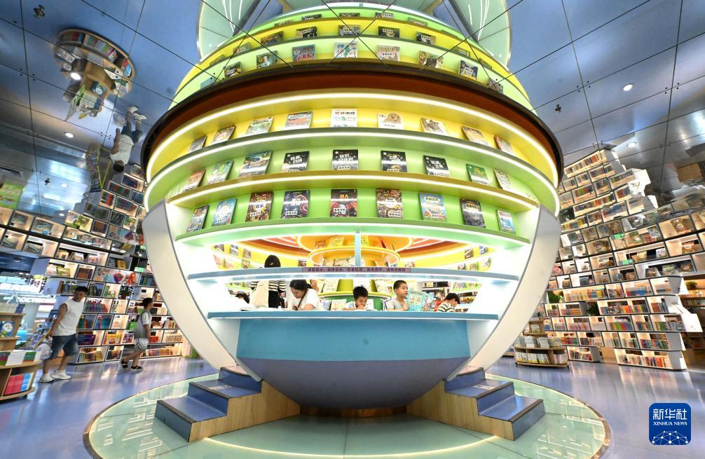 8月11日,小朋友在河北石家庄书城儿童区阅读。