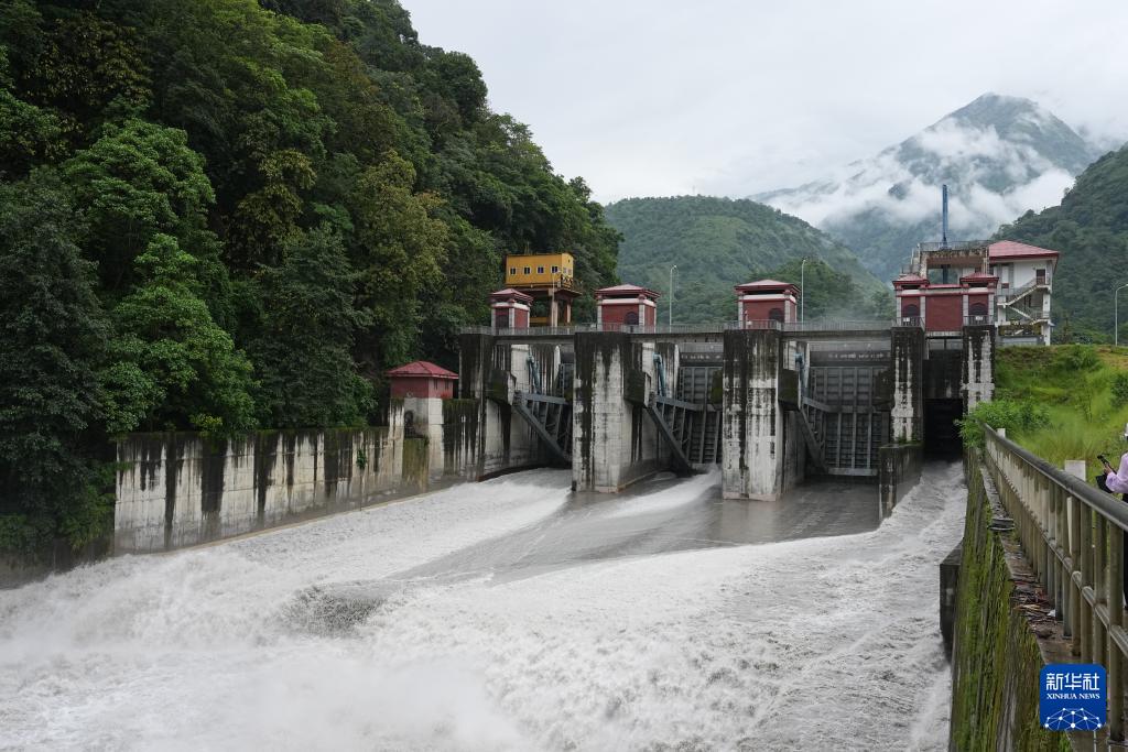 这是8月8日在尼泊尔勒姆宗县拍摄的上马相迪A水电站大坝。