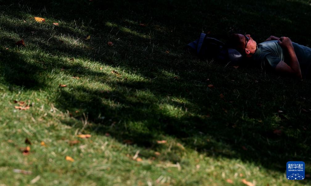 8月12日,一名男子在英国伦敦圣詹姆斯公园小憩。
