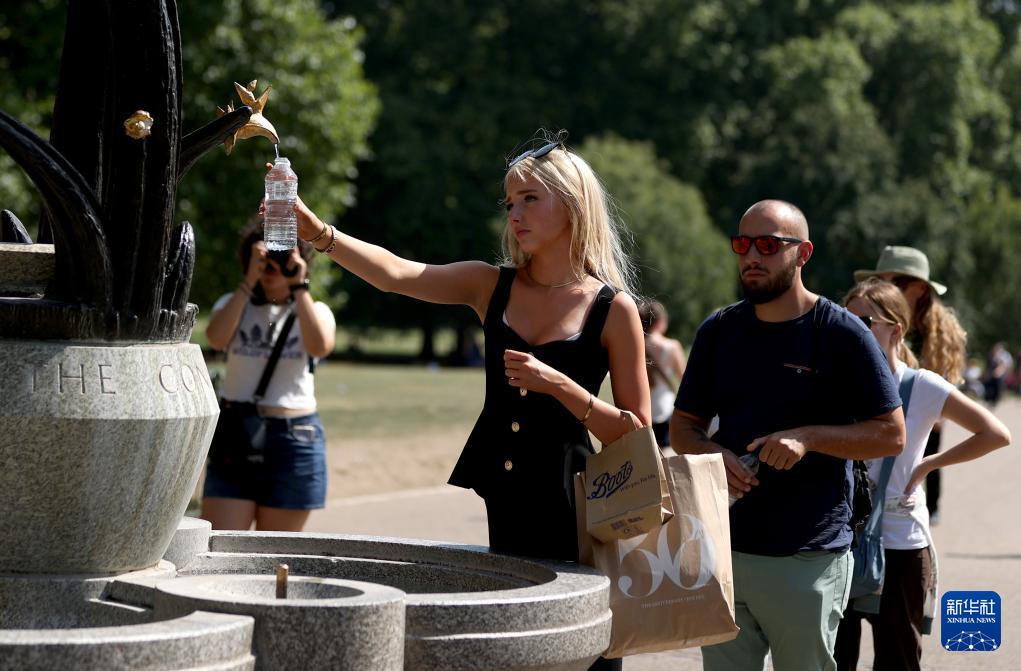 8月12日,人们在英国伦敦绿园饮水处排队取水。