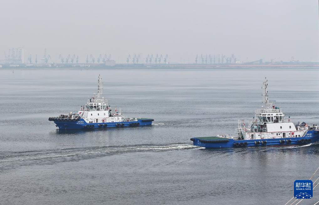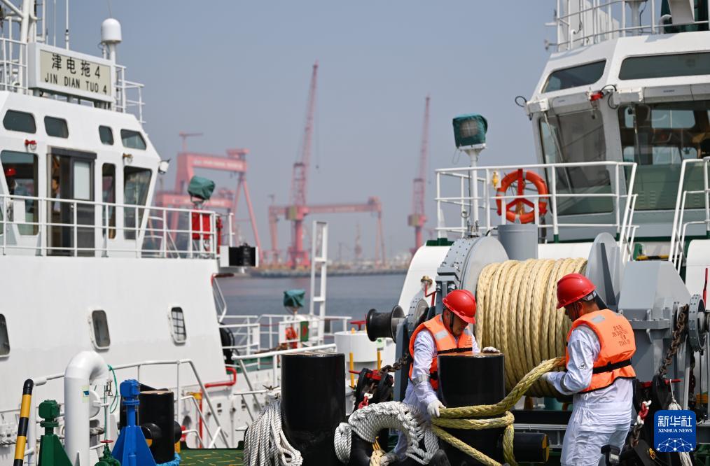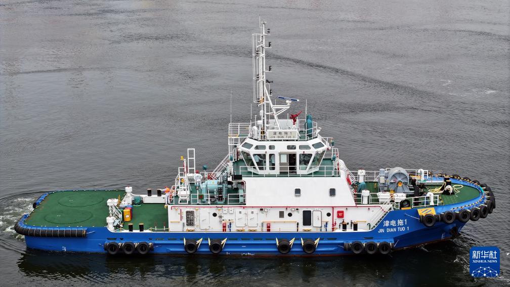 当日,由4艘纯电动港作拖轮组成的“绿色舰队”在中船天津码头鸣笛启航。