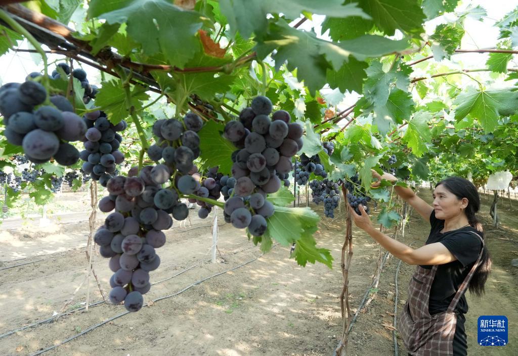 8月12日,河北省卢龙县蛤泊镇鲍子沟村一家葡萄种植合作社社员在采摘葡萄。