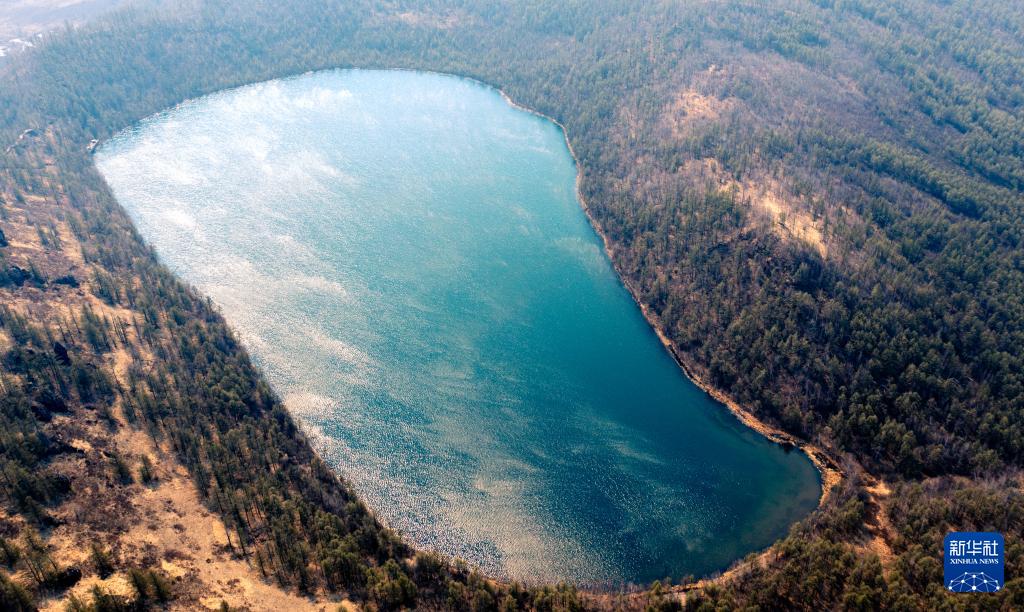 这是5月20日在内蒙古阿尔山国家森林公园拍摄的驼峰岭天池(无人机照片)。