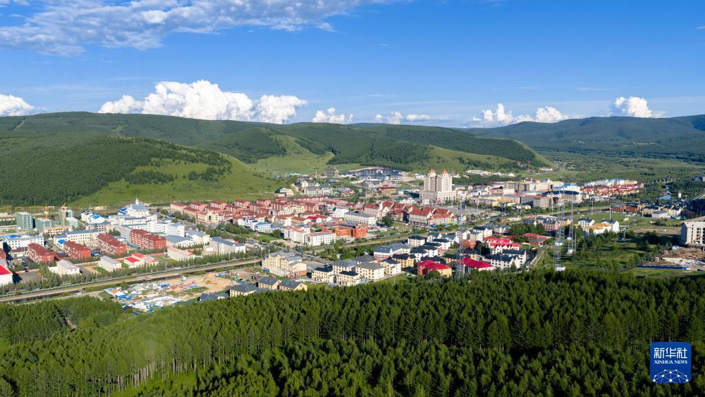 这是7月27日拍摄的阿尔山市城市景色(无人机照片)。