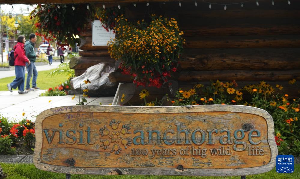 8月14日,人们走进美国阿拉斯加州安克雷奇的游客中心。