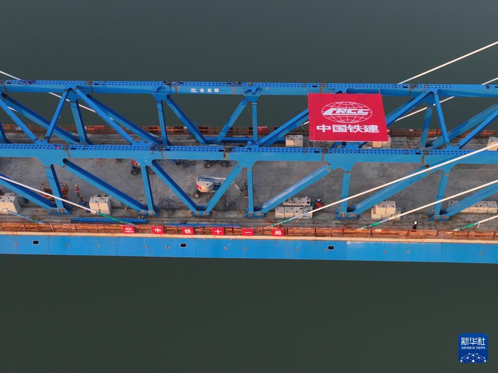 西十高铁汉江特大桥钢桁梁合龙
