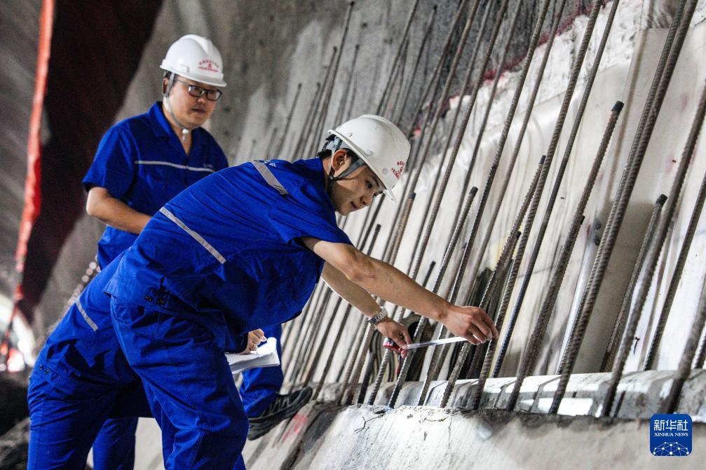 8月19日,中铁五局的建设者在渝昆高铁炳辉隧道内作业。