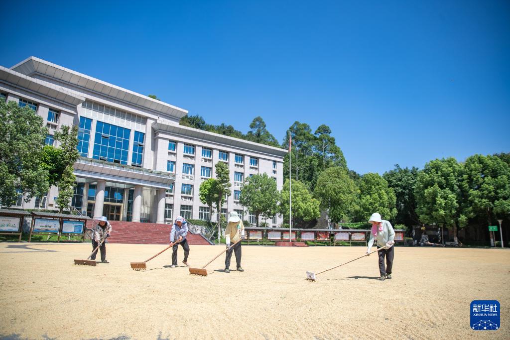 近日,重庆市永川区水稻陆续迎来成熟期,当地基层政府将政府大院、文化广场等公共区域提供给农户晾晒粮食,乡村呈现出一片丰收图景。