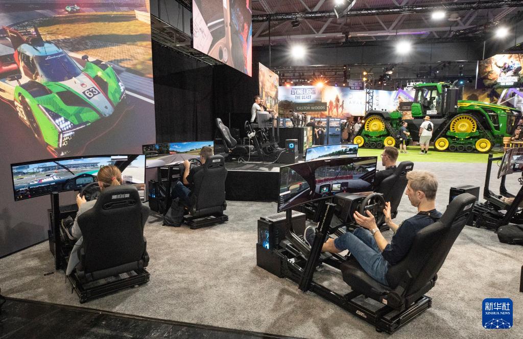 8月20日,在德国科隆,人们在2025年科隆国际游戏展上试玩游戏。