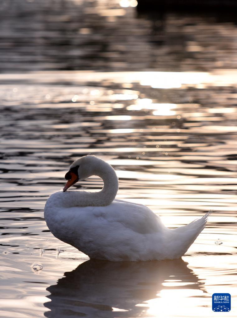 这是8月20日傍晚在奥地利维也纳拍摄的多瑙河上的天鹅。