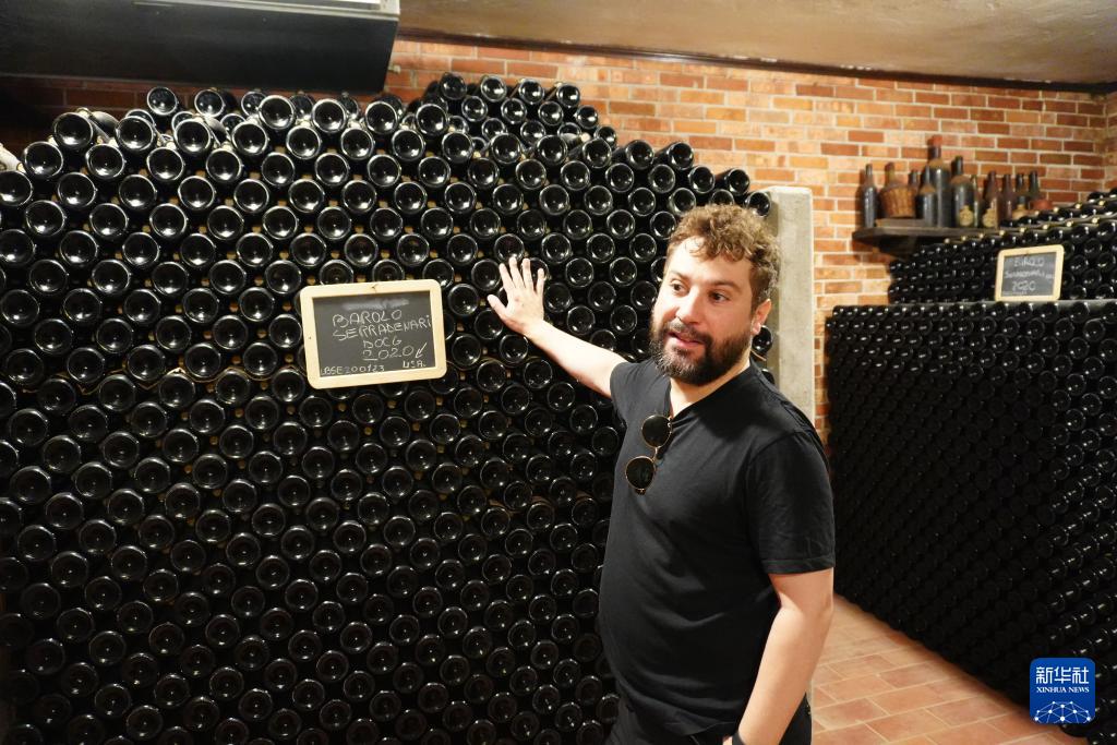 8月17日,在意大利拉莫拉镇,马斯卡雷洛家族酒庄负责人法比奥·马斯卡雷洛在酒窖里工作。新华社记者 张馨文 摄