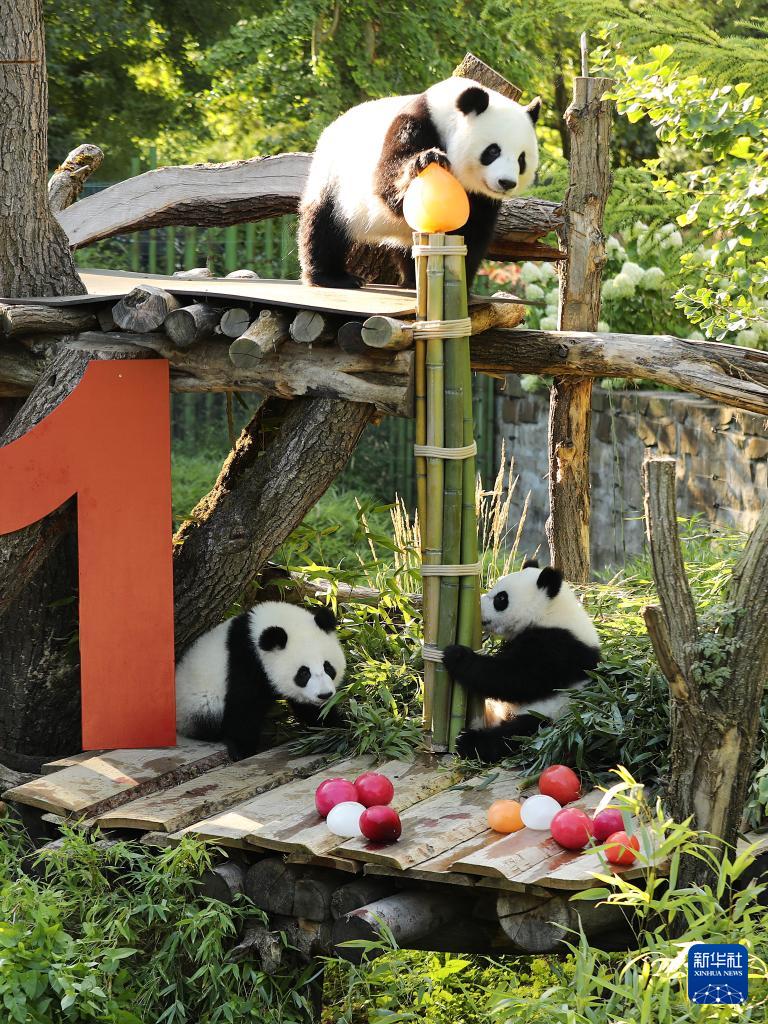 在德国出生的第二对大熊猫双胞胎“梦好”和“梦甜”22日迎来一岁生日。这对大熊猫幼崽的父母“娇庆”和“梦梦”于2017年6月从成都抵达柏林动物园,开始为期15年的旅居生活。2019年8月31日,“梦梦”成功诞下一对雄性双胞胎,分别取名“梦想”“梦圆”,这是德国首次迎来大熊猫诞生。2024年12月,这对双胞胎兄弟回到中国。2024年8月22日,“梦梦”顺利产下“梦好”“梦甜”。