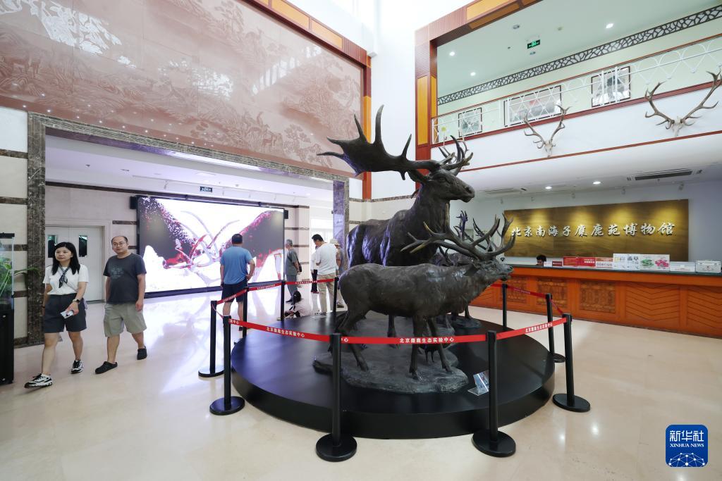8月24日,游客在北京南海子麋鹿苑博物馆参观。