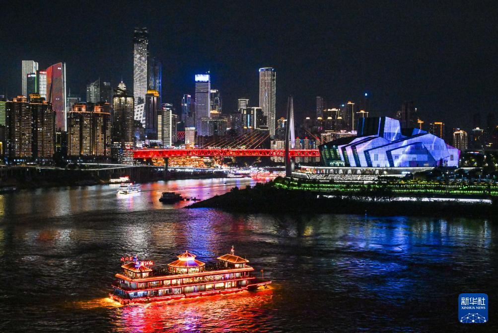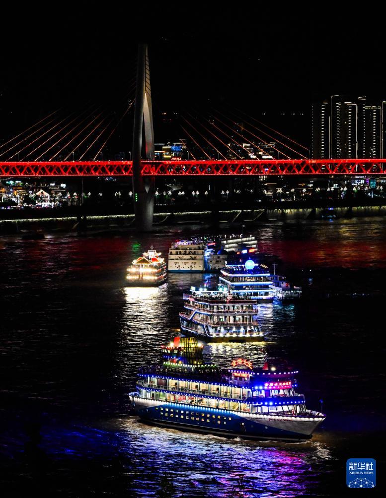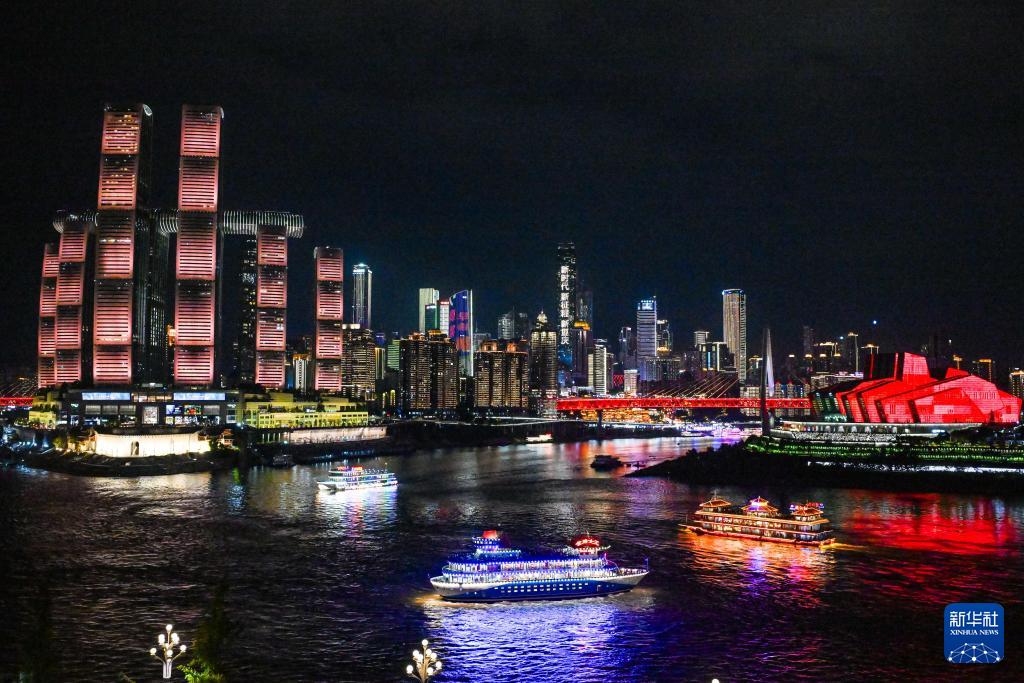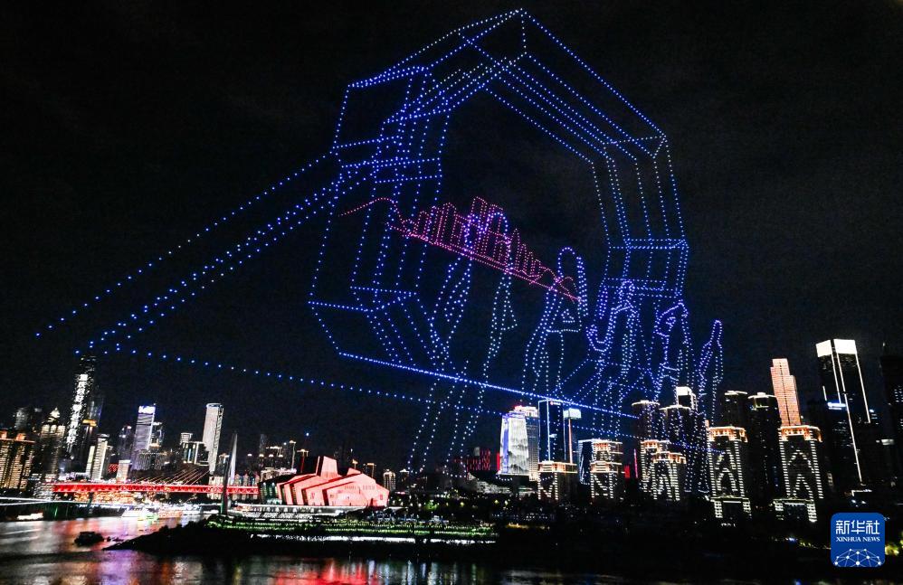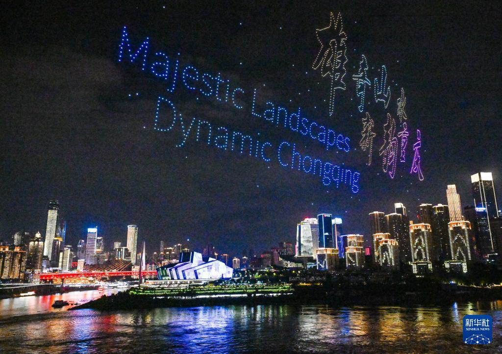 夜幕下的重庆灯火璀璨,魅力十足。今年4月19日起,每周六和重要节假日夜晚,重庆举行“魅力重庆”无人机灯光秀常态化展演,进一步带火重庆“山水颜值”特色夜间消费,成为具有山城辨识度的消费新场景。