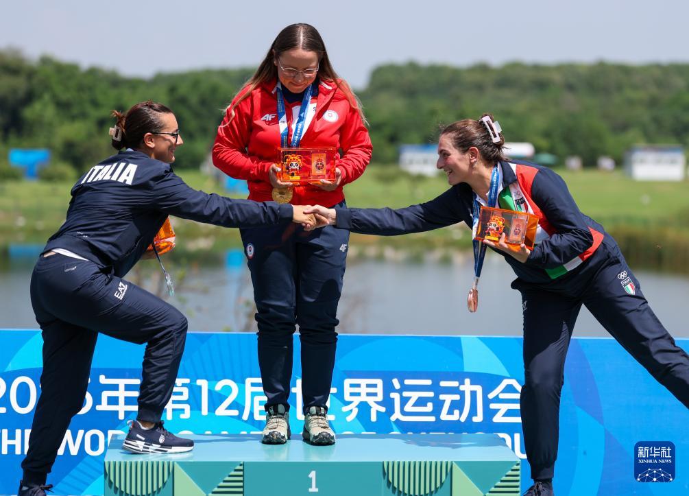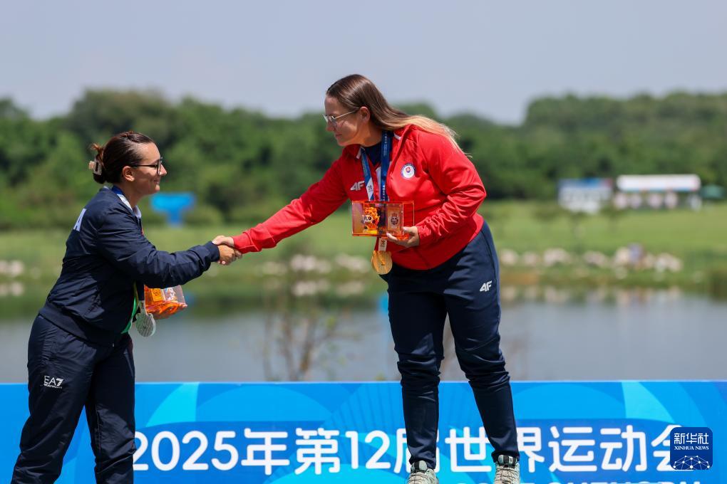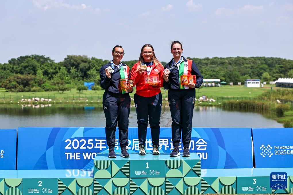当日,2025年成都世运会射箭女子反曲弓决赛在青龙湖湿地公园举行。最终斯洛伐克选手巴兰科娃获得冠军,意大利选手雷巴利亚蒂和迪弗朗切斯科分获亚军和季军。