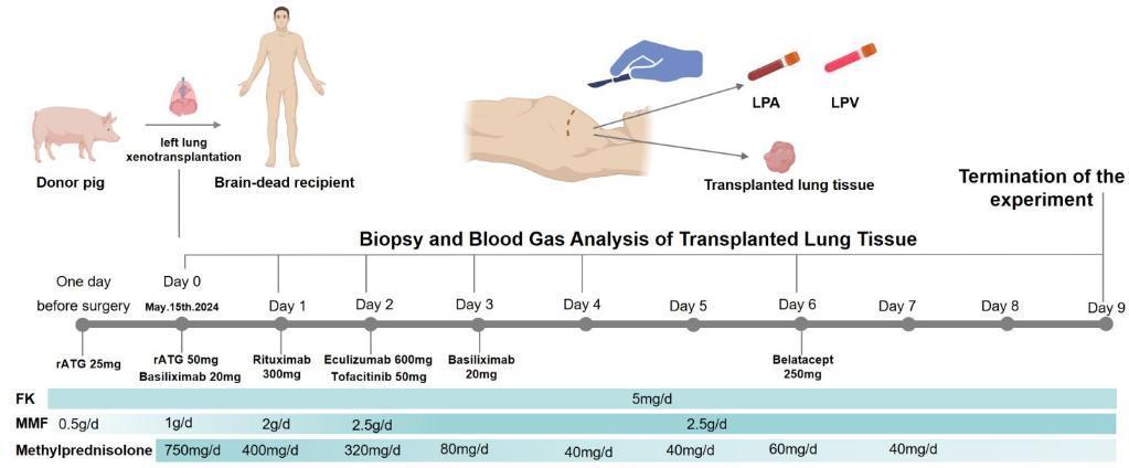 广州医科大学附属第一医院教授何建行率领的研究团队,将一只经过基因编辑的巴马香猪左肺移植到一名脑死亡者体内,模拟临床常见的单肺移植手术。该供体猪经过6处基因编辑,以降低其器官移植到人体后的免疫风险。手术后,呼吸、血液、影像等监测数据显示,移植肺维持通气与气体交换功能长达9天,其间未发生超急性排异反应,同步病原学监测也未发现活跃感染迹象。