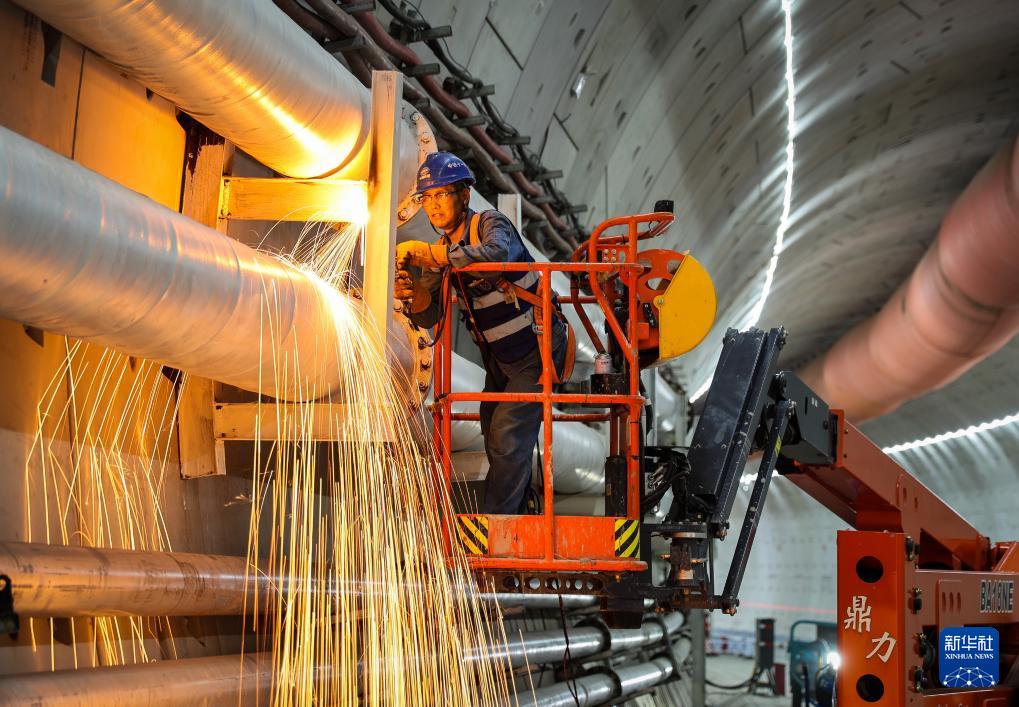 8月25日,施工人员在广南联络线西塱3号隧道焊接泥浆运输管支架。