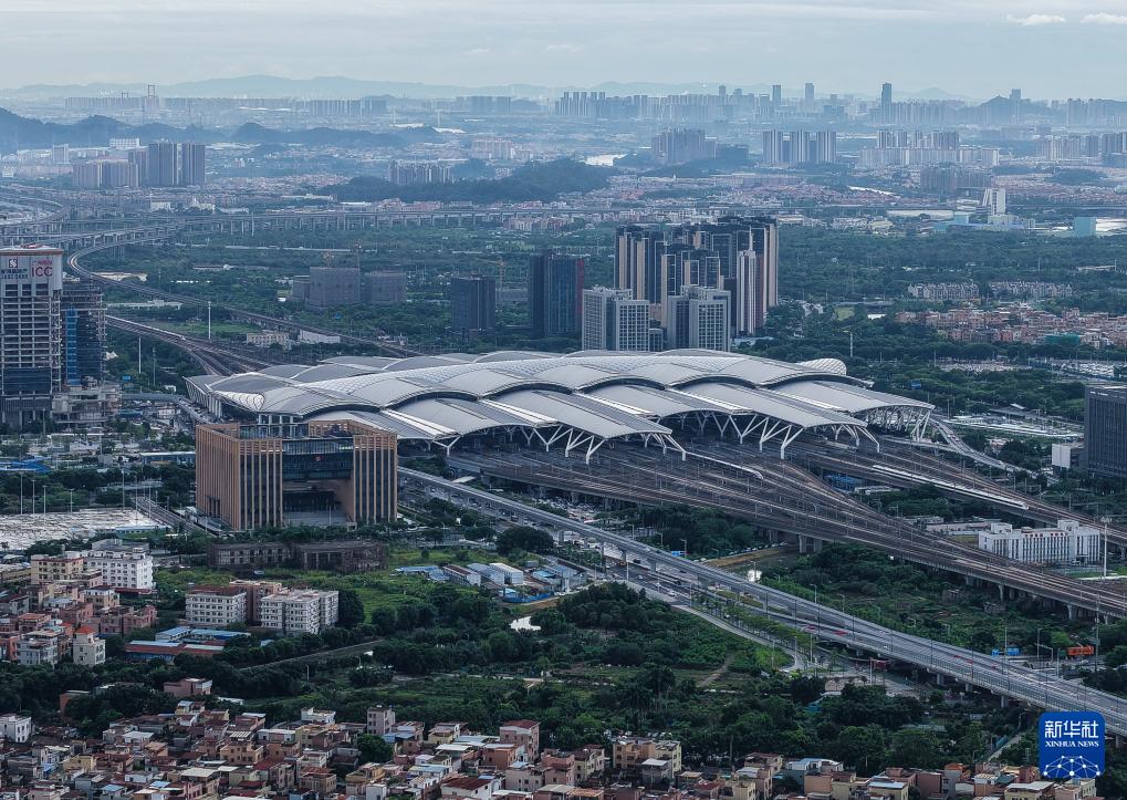 这是8月25日拍摄的广州南站(无人机照片)。广南联络线将从广州南站导出,一站直达位于中心城区的广州站。