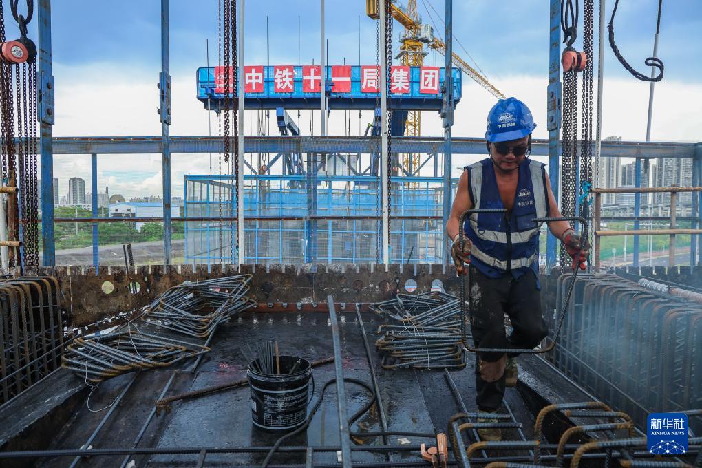 8月25日,施工人员在广南联络线跨动走线特大桥进行连续梁施工。