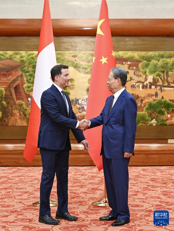 新华社北京8月26日电 全国人大常委会委员长赵乐际26日下午在人民大会堂同瑞士联邦议会联邦院议长卡罗尼举行会谈。