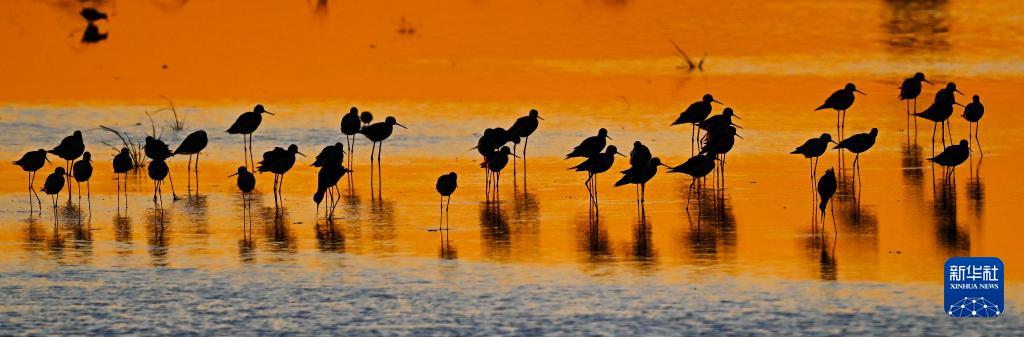群鸟在东台条子泥湿地“720”高潮位栖息地栖息(2023年8月31日摄)。