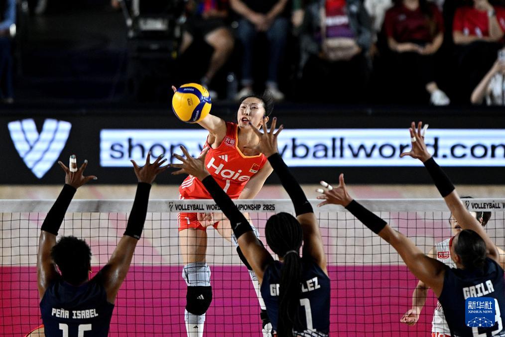 当日,在泰国清迈举行的2025年世界女排锦标赛F组比赛中,中国队3比0战胜多米尼加队。