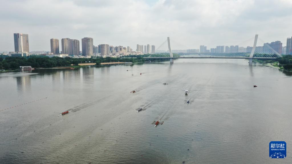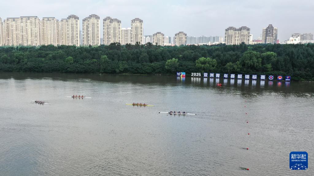 这是8月29日拍摄的2025年亚洲青年赛艇锦标赛比赛现场(无人机照片)。新华社记者 潘昱龙 摄