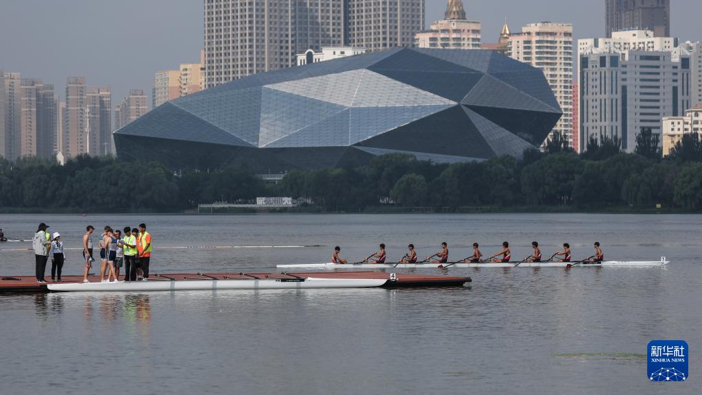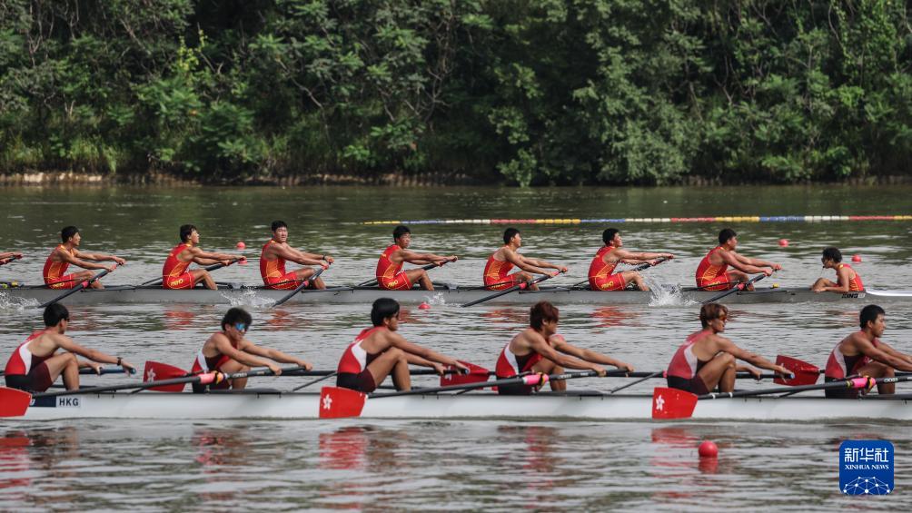 8月29日,中国队(上)在U19男子八人单桨有舵手预赛中。新华社记者 潘昱龙 摄