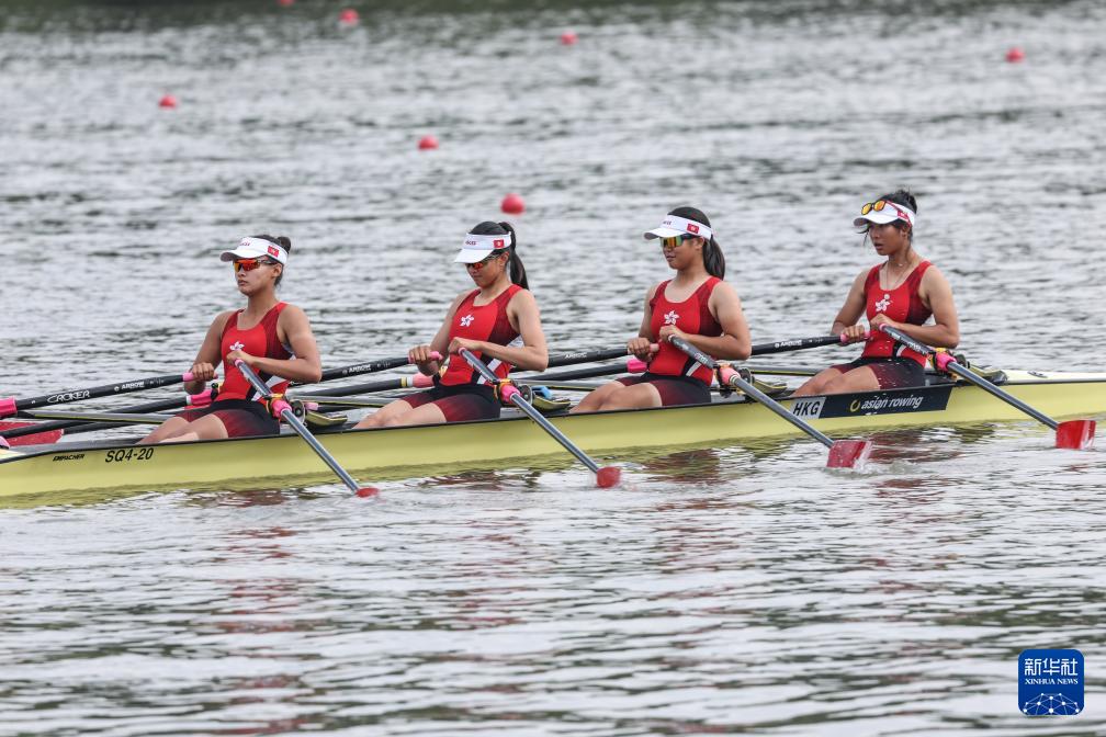 8月29日,中国香港队在U19女子四人双桨赛前准备中。新华社记者 潘昱龙 摄