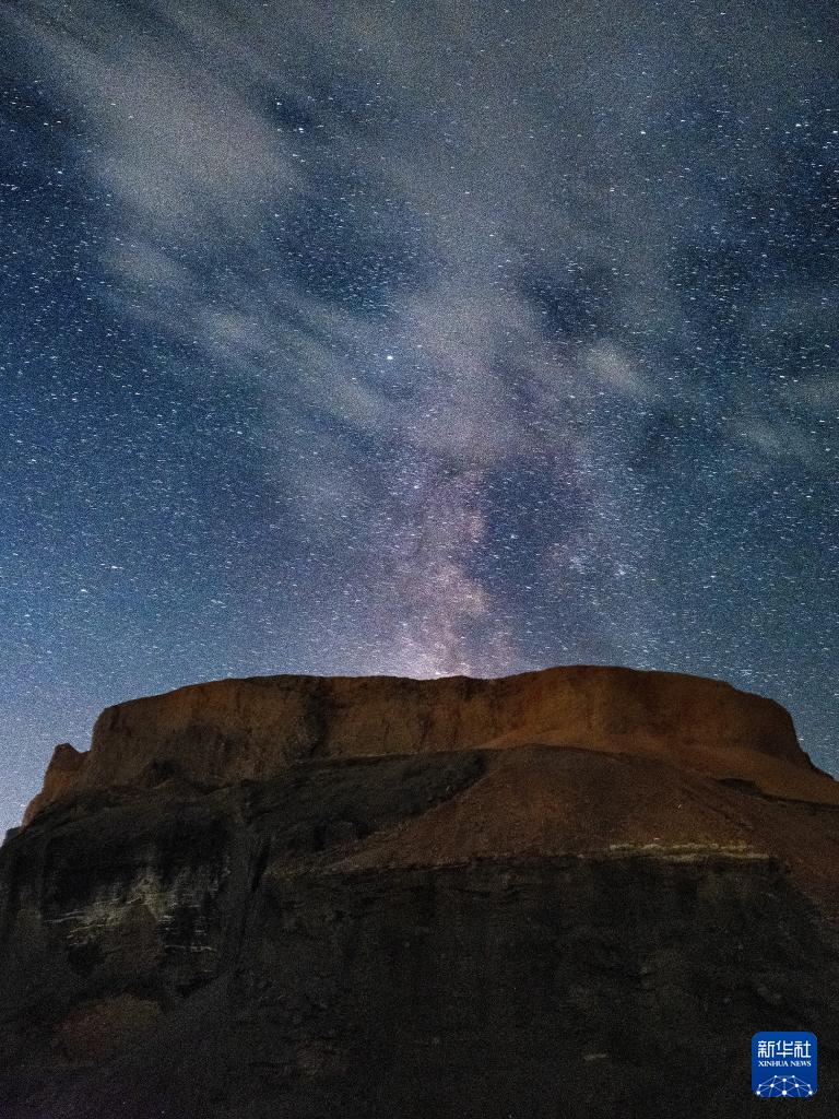 这是8月30日在内蒙古乌兰察布市察哈尔右翼后旗乌兰哈达火山地质公园内拍摄的银河下的6号火山(堆栈合成照片)。