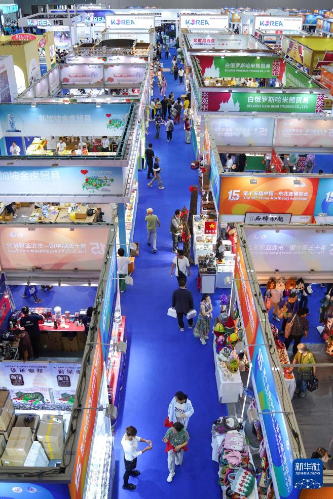 近日,在吉林长春举行的第十五届中国—东北亚博览会上,来自全球40余个国家和地区的特色商品亮相展会现场,吸引众多参观者选购。