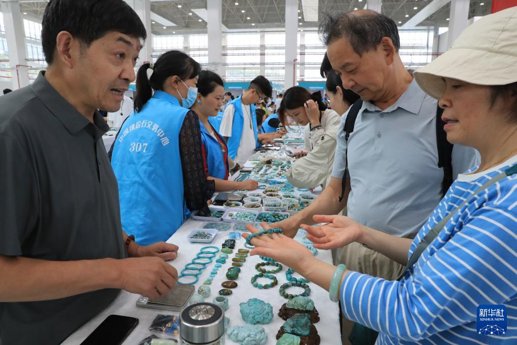 8月30日,顾客在湖北省竹山县中国绿松石交易中心内选购。
