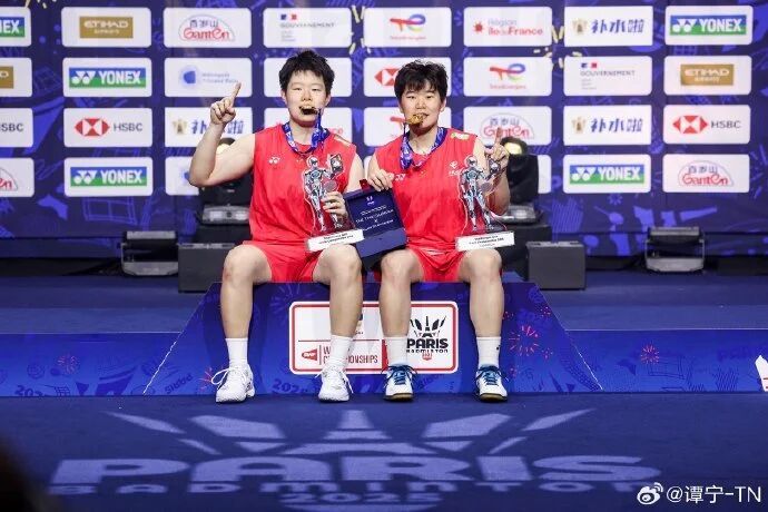 8月31日,冠军中国组合刘圣书/谭宁(右)在颁奖仪式上