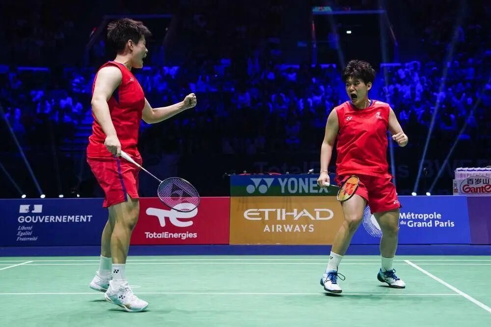 8月31日,冠军中国组合刘圣书/谭宁(右)在颁奖仪式上
