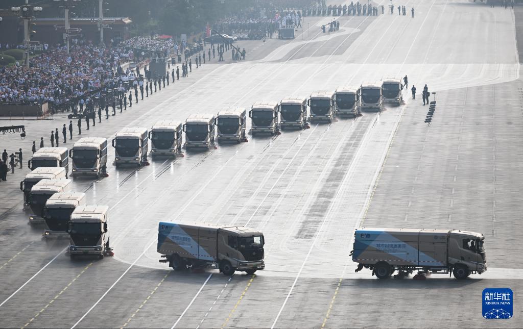 9月3日清晨,环卫车在进行路面清洁。