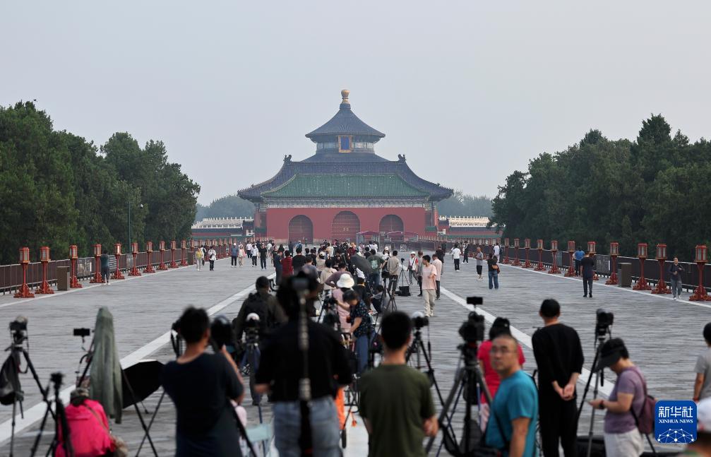 9月3日清晨,摄影爱好者在天坛公园拍摄。
