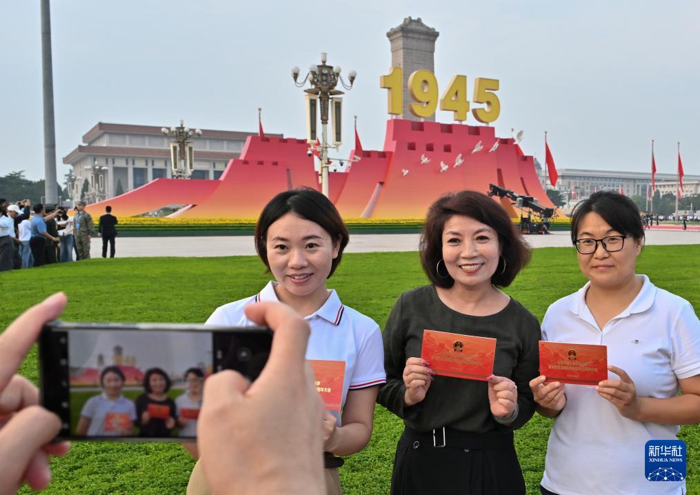 9月3日,纪念中国人民抗日战争暨世界反法西斯战争胜利80周年大会将在北京隆重举行。这是观礼嘉宾在合影。