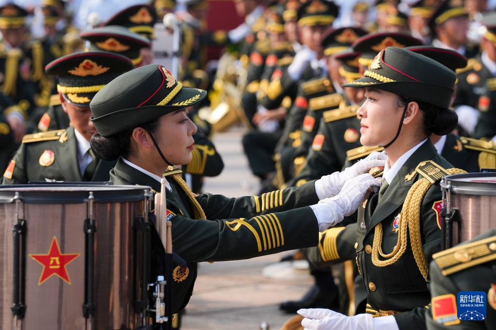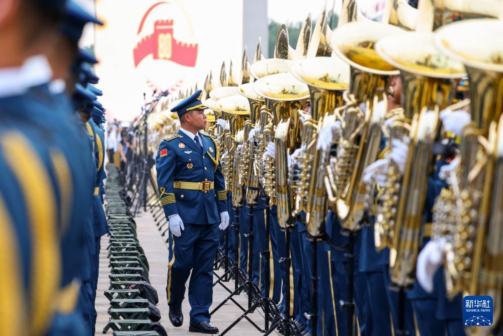 9月3日,纪念中国人民抗日战争暨世界反法西斯战争胜利80周年大会将在北京隆重举行。这是中国人民解放军联合军乐团在做准备。
