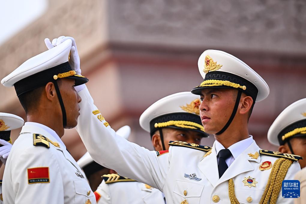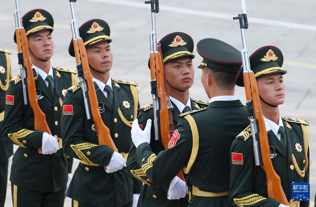 9月3日,纪念中国人民抗日战争暨世界反法西斯战争胜利80周年大会将在北京隆重举行。这是标兵在做准备。